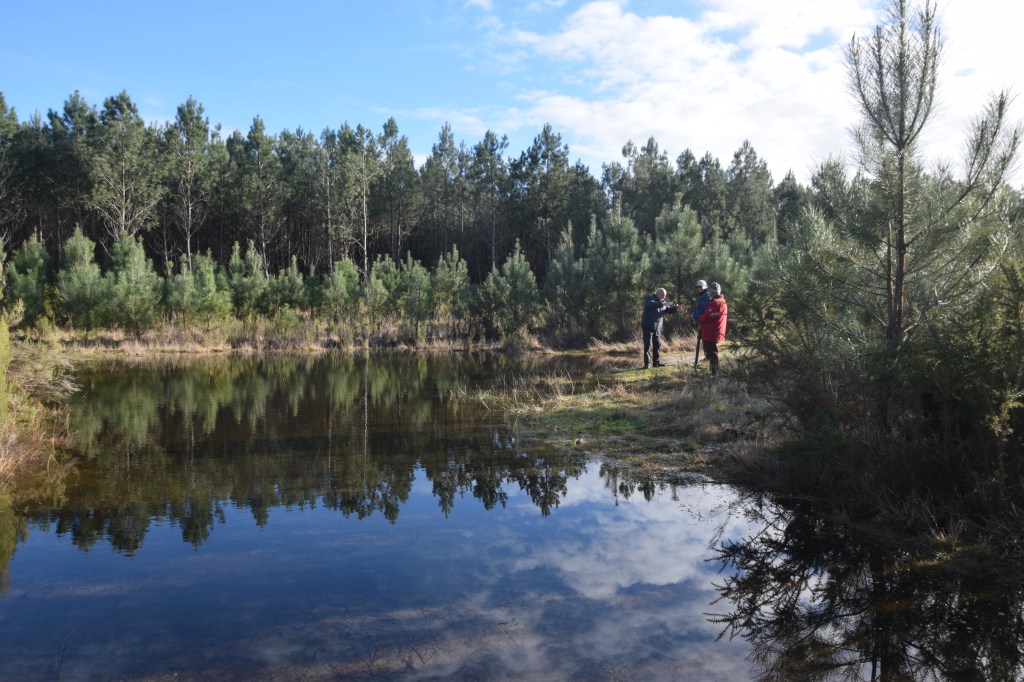 Samedi 7 février, sous un ciel éclatant, 20 personnes se sont retrouvées pour à Lanton, discuter avec des agriculteurs, examiner la petite écluse qui, sur un fossé longeant les champs (fait par le SIBA dans le cadre d’un projet Rezilhience), retient l’eau en cas de grandes pluies et terminer par l’étude d’une lagune ancienne. L’Europe était représentée : deux Suisses, une Allemande, des gens venus d’Arcachon, d’autres du Cap-Ferret. Un grand merci à Betey environnement qui avait très bien préparé cette visite.